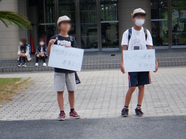 昨日に引き続き、委員会活動の紹介です。ここ数日、物部スマイル委員会の5・6年生が、毎朝校門であいさつ運動を実施してくれています。学校の仲間から声をかけられるのは子どもたちにとっても特別なのか、教員が声をかけるよりも返ってくる返事が大きいような気がします。中には、「僕も一緒にする!」と言って並んで一緒にあいさつをしてくれる下学年の姿も。爽やかなあいさつの輪が、自然と広がってくれることを願っています。