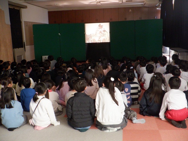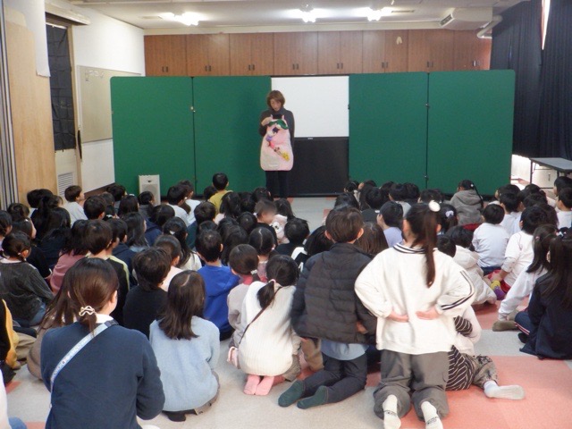 おはなしかい「たんぽぽ」の皆さんが、1年生2年生それぞれに1時間ずつ、お話を聞かせてくださいました。エプロンシアターやスクリーンに映してのお話など、子どもたちがお話の世界に浸れるよう色々と工夫しながらお話をしてくださいます。1年・2年それぞれに別のお話を準備してくださり、楽しい時間を過ごすことができました。