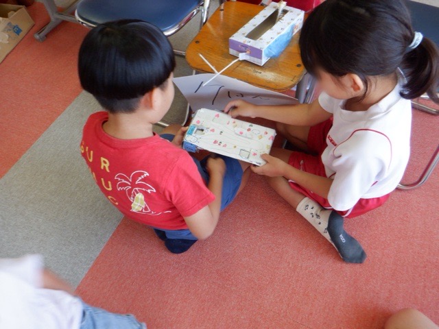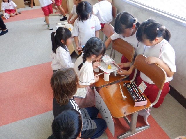今週は、2年生が1年生を招いて「おもちゃランド」を開いています。それぞれが工夫をしながら作った「動くおもちゃ」で1年生に楽しく遊んでもらおうと、呼び込みをしたり熱心に遊び方を教える2年生の子どもたち。何度も試行錯誤したり作り直したりしたおかげで、1年生にたくさん楽しんでもらうことができたようです。自分たちでやり切り、満足そうに微笑む2年生の姿が印象的でした。