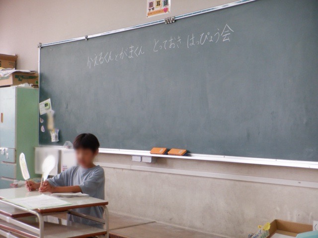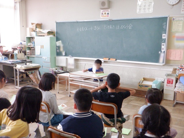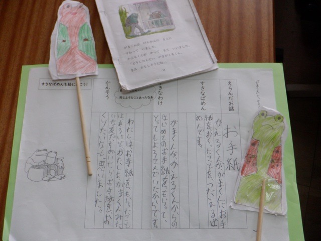 2年生が、物語文「お手紙」の学習のまとめとして、「とっておき発表会」を行いました。今回の学習では、「お手紙」の主人公であるかえるくんとがまくんが登場する他の物語を並行して読み進め、自分が一番気に入った物語について発表します。物語の好きな場面や好きな理由について、友だちに熱心に伝えようとする姿が多く見られ、ほのぼのとした雰囲気の発表会となりました。