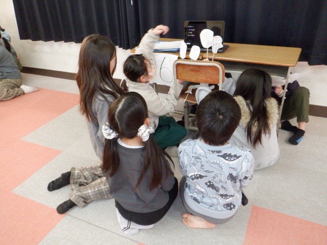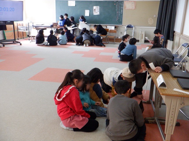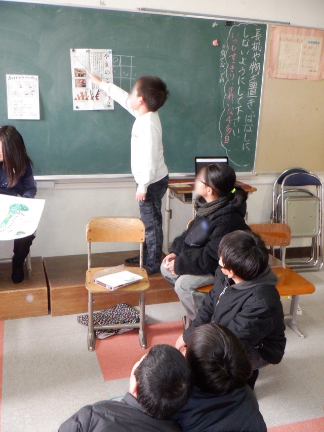 4年生が、「やまのこ学習」を終えて学んだことや考えたことをまとめ、3年生に学びの内容を伝えました。パソコンでまとめたり、紙芝居や新聞風にまとめたりと、自分たちの学びを思い思いの方法でまとめた4年生の子どもたち。そんな4年生の説明を、3年生は身を乗り出すようにして熱心に聞き入ります。「来年は自分たちがやまのこに行くんだ!」とイメージを膨らませながら、しっかり学ぶことができました。