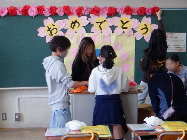 明日に控えた入学式に向け、新6年生が準備のために登校。校内をきれいに掃除したり、体育館や教室などをきれいに飾り付けたりしてくれ、1年生を迎える準備が整いました。春休み中に登校し、準備を進めてくれた6年生のみんな、ありがとう!明日は天気もよさそうです。温かな日差しの中、みんなが登校してくるのを待っています。