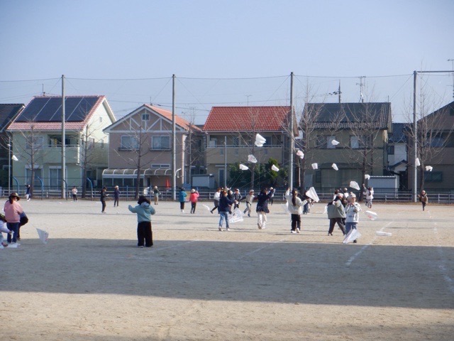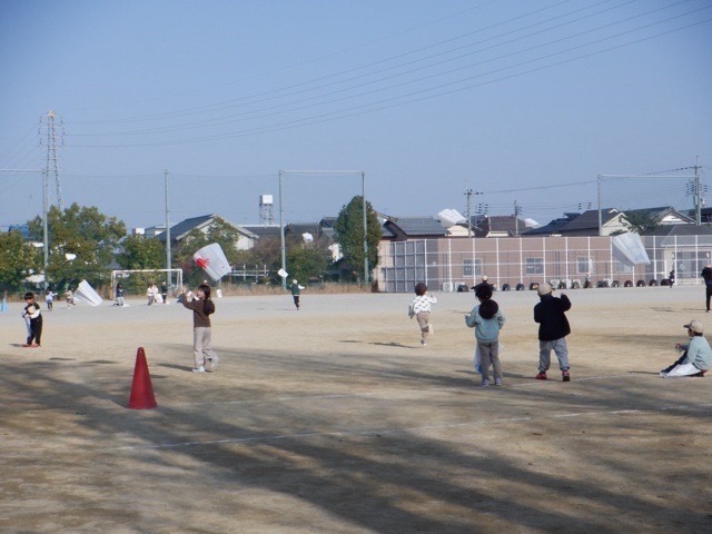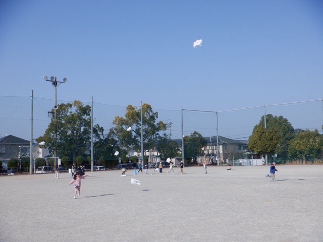 1年生が、生活科の学習で凧揚げをしました。まずは、自分の好きな絵をどんどん描いてお気に入りの凧を製作。その後、運動場に出てきれいな青空に向かって凧を揚げました。糸が絡み合ってしまうトラブルもありましたが、仲間と楽しい時間を過ごすことができました。