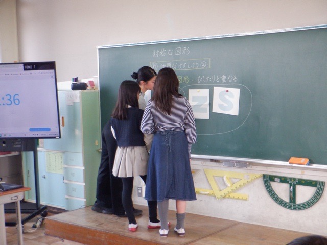 対称な図形(6年算数) 2026年4月14日 最終更新日時 : 2026年4月14日 monobe_admin 6年生が、算数で「対称な図形」について学んでいます。アルファベットを切り取って仲間分けをしたり、友だちと相談しながら形の特徴を調べたりと、班の仲間と力を合わせながら学びを深めることができていました。 ことができていました。