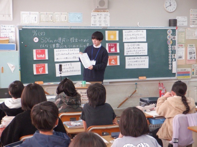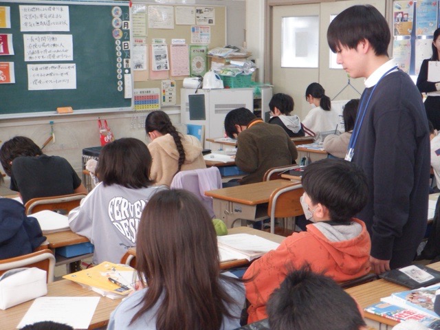 先月より、新たな教育実習生を1名受け入れています。実習期間も残りわずかとなったこの日、実習生の公開授業が行われました。5年生の社会科で、SDGsの視点を取り入れた工業製品の在り方について考える授業です。実習当初は緊張しながら授業を進めていた学生も、この日は終始落ち着いて、子どもたちの様子を見ながら授業を進めていました。残りわずかな実習期間、子どもたちとの時間を大切に過ごしてほしいと願っています。