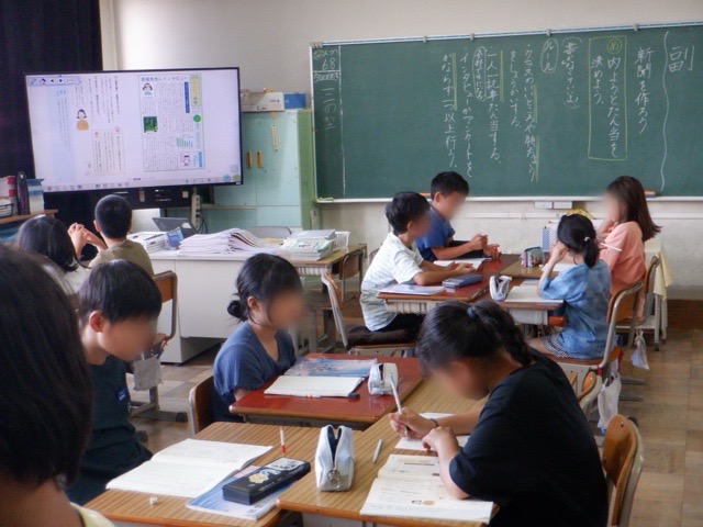 4年生の国語科では、新聞づくりに取り組んでいます。各グループで新聞のテーマを考え、取材をしてメモをしたり、紙面の割り付けを考えたりしながら、知らせたいことがわかりやすく伝わる方法を一生懸命考えます。「グラフを入れたらいいんじゃないかな。」「こんな見出しにしない?」などと相談する姿は、まるで本当の新聞記者のようです。どんな新聞が完成するのか、今から楽しみです。