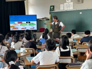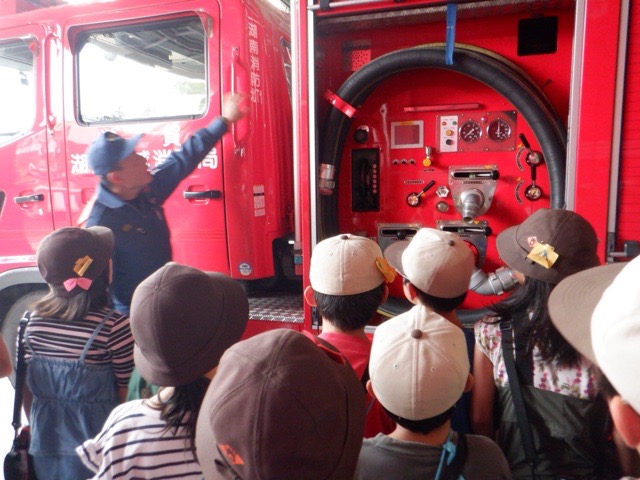 3年生が、草津市の琵琶湖博物館と守山市の北消防署へ校外学習で行きました。琵琶湖博物館では、昔の暮らしの様子を見学したり、水族館を見学したりして、琵琶湖中心とした滋賀の暮らしについて学びを深めました。その後、午後に訪れた消防署では、車両見学・放水体験・煙トンネル体験・消防士さんの話に分かれて見学。私たちの暮らしを守る消防署の仕組みや仕事について、体験を通して学ぶことができました。