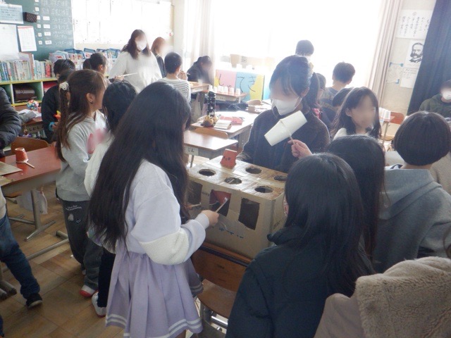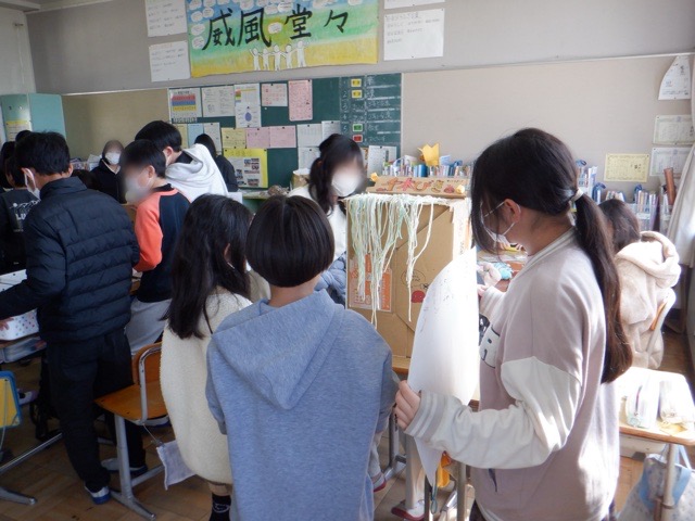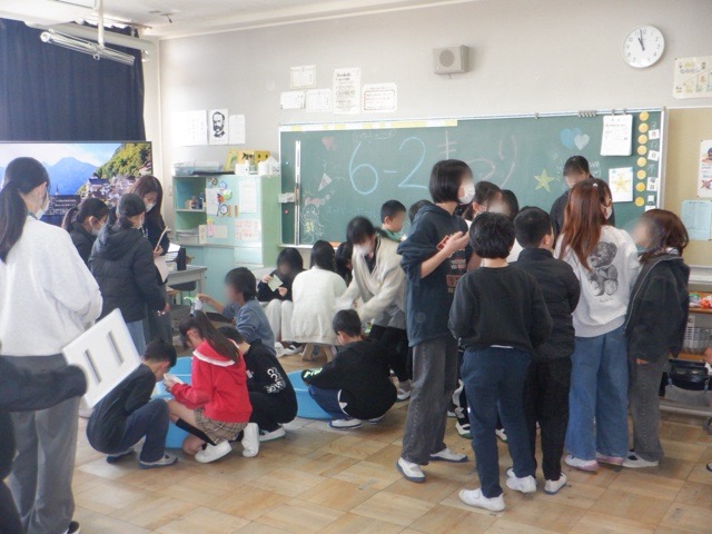 6年生が、下級生たちを案内して「祭り」を開いてくれています。この日は、3年生と2年生を招き、交流を深めました。福笑いや輪投げ、間違い探しなど、6年生が手作りでコーナーを運営し、下級生に楽しんでもらいます。みんなに楽しんでもらおうと一生懸命取り組む6年生の姿は、まさに「LOVEものべ」を象徴する姿でした。