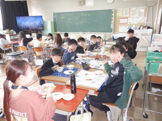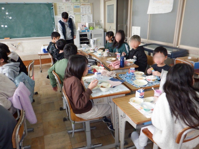 給食スタート 2026年1月9日 最終更新日時 : 2026年1月9日 monobe_admin 今日から給食が再開しました。今日の給食は「お正月献立」。さわらのみそだれ・紅白なます・お煮しめと、縁起の良い献立がたくさん。子どもたちは、久々の給食を楽しそうに味わっていました。
