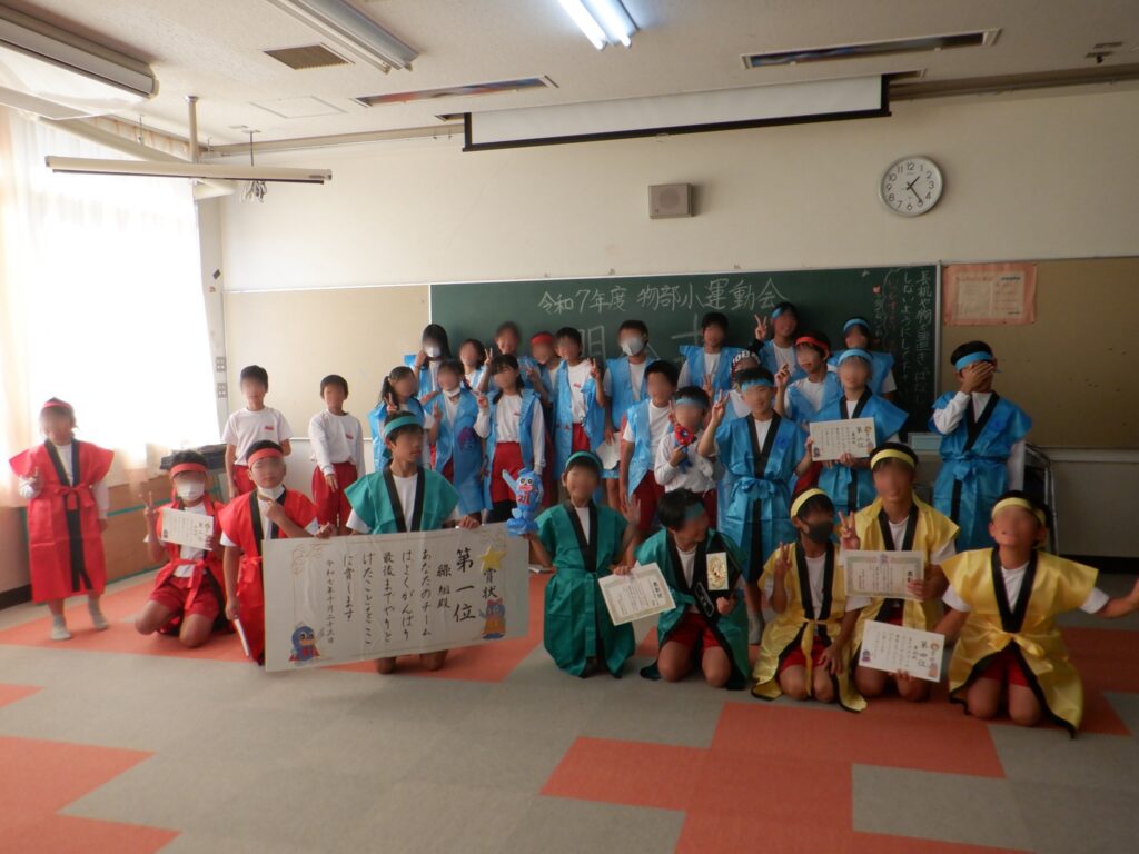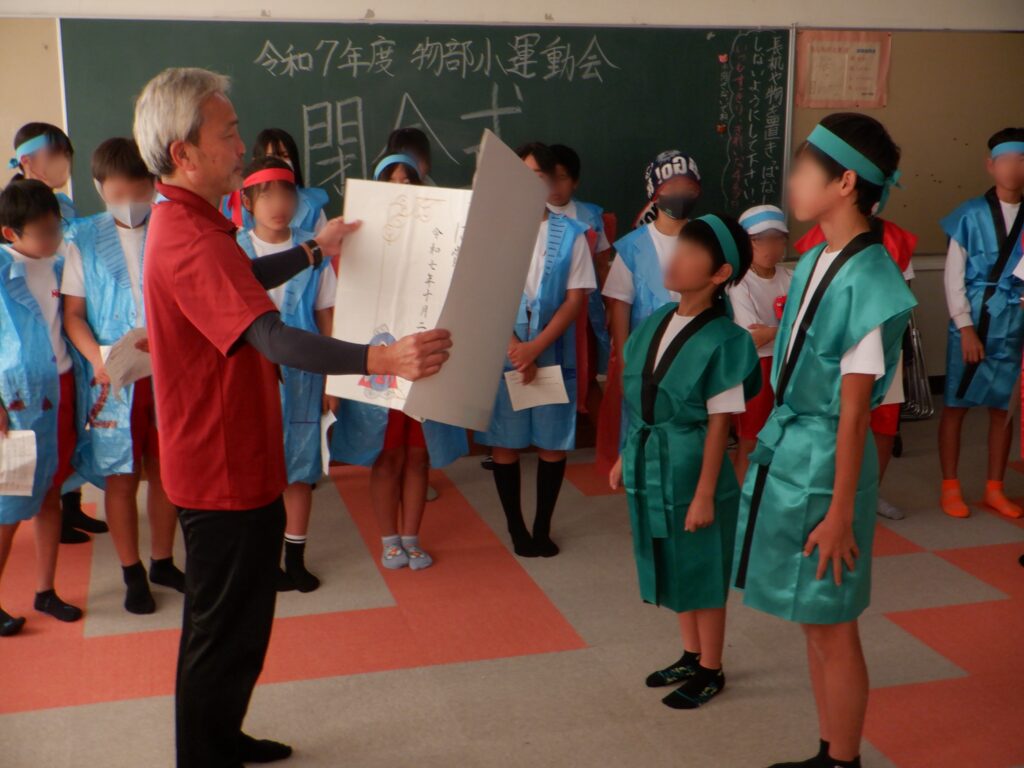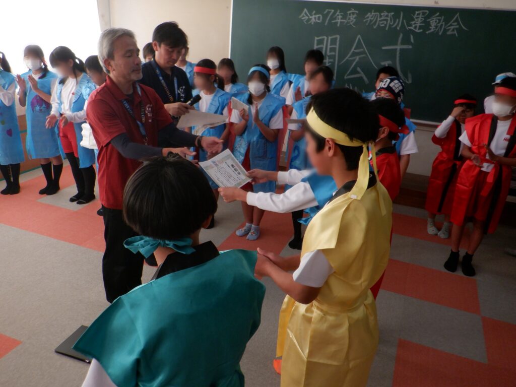 「ものべっこ 力を合わせて 金メダル」のスローガンのもとに開催された今年の物部小学校運動会。最後の閉会式はリモートで行われ、応援の表彰や順位発表などが行われました。最後まで力一杯頑張った子どもたちの心には、きっと素晴らしい金メダルが輝いたことと思います。朝早くから多数応援に来てくださり、ありがとうございました。