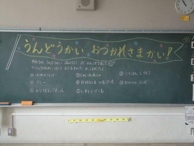 運動会お疲れさま会 2025年10月24日 最終更新日時 : 2025年10月24日 monobe_admin 昨日無事に運動会を終えて、いくつかのクラスで「お疲れさま会」が開かれました。卓球をしたりドッジボールをしたり、リレー遊びをしたりと、重い思いの方法で、自分たちの頑張りをねぎらう姿が見られました。