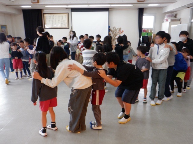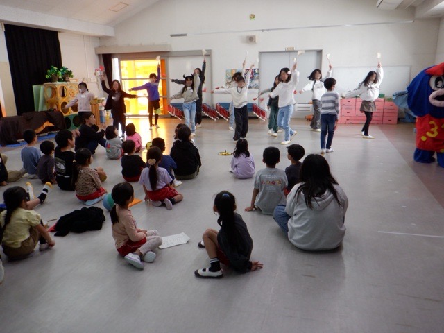 前回に続き、今日は別のクラスの5年生が物部幼稚園5歳児と「55交流」を行いました。運動会でがんばった体操を披露したり、じゃんけん列車やリレーなどで遊んだりと、5歳児の皆さんに楽しんでもらえるようにと趣向を凝らす5年生の子どもたち。5歳児の身長に合わせようとしゃがみながらじゃんけん列車をするなど、相手を思いやりながら行動する姿が数多く見られました。