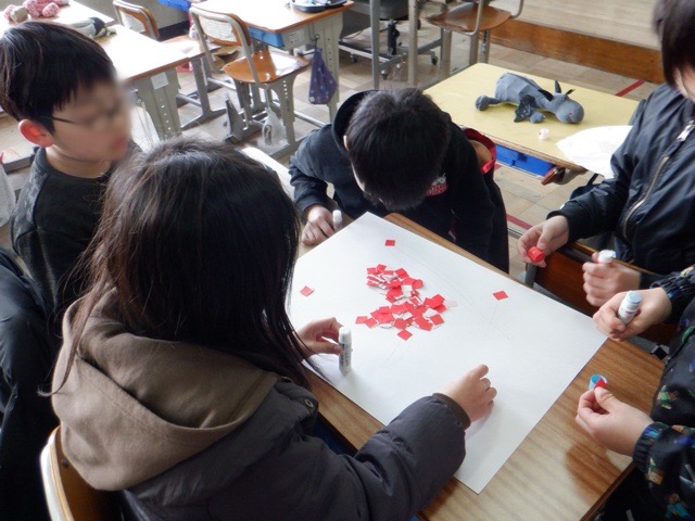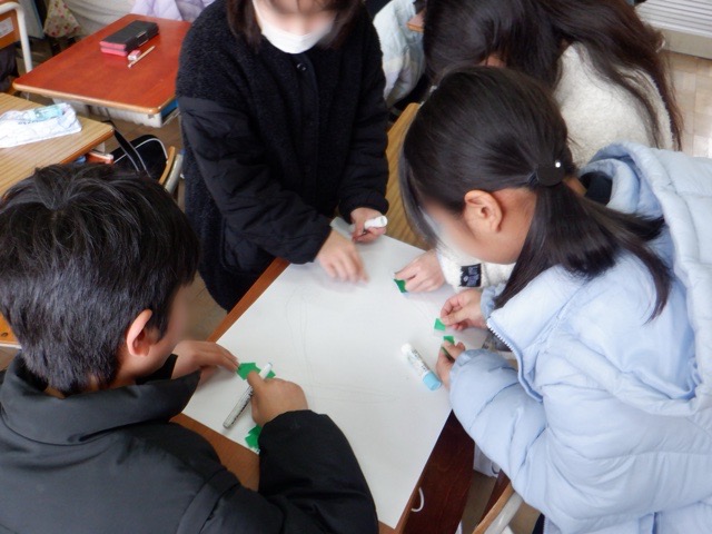 2月も半ばに入り、いよいよ6年生の卒業が迫ってきました。この日は、4年生が「6年生を送る会」に向けての準備を進めていました。お世話になった6年生に、感謝の気持ちを込めて飾り作りに取り組む4年生の子どもたち。きれいな飾りの完成が、今から楽しみです。