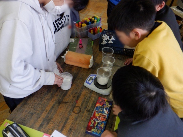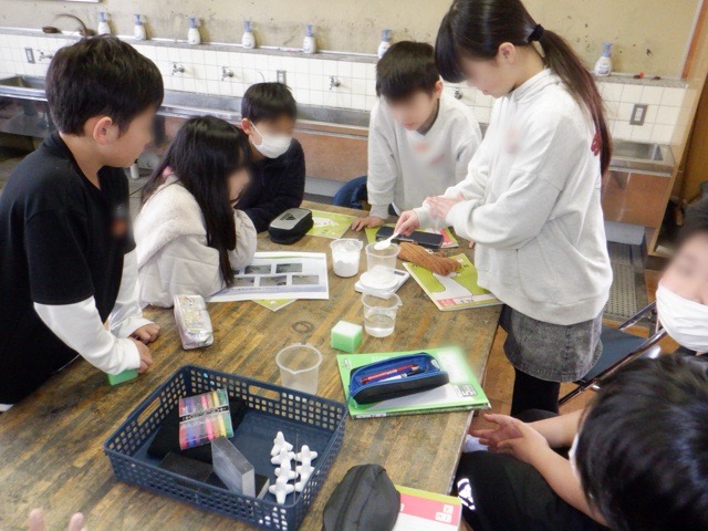 5年生理科の学習の一環で、ゲストティーチャーに来ていただき護岸工事の方法について説明していただきました。流れる水の力によって河川が崩壊しないように行っている工事の様子を見せていただき、その後みんなでミニテトラポットを作成。実際にセメントを練りながら、楽しく体験することができました。